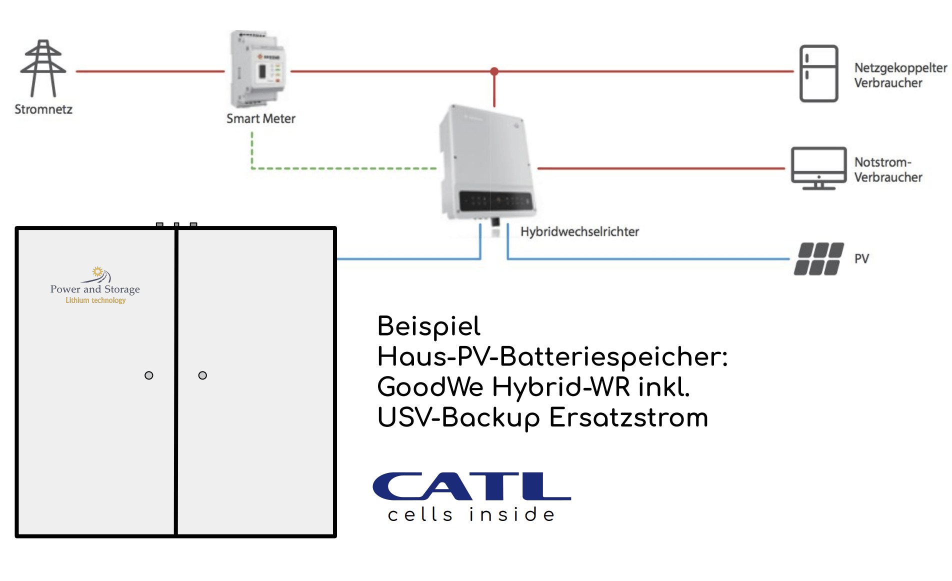 Die überschüssige Energie von der PV-Anlage wird in der Batterie gespeichert.