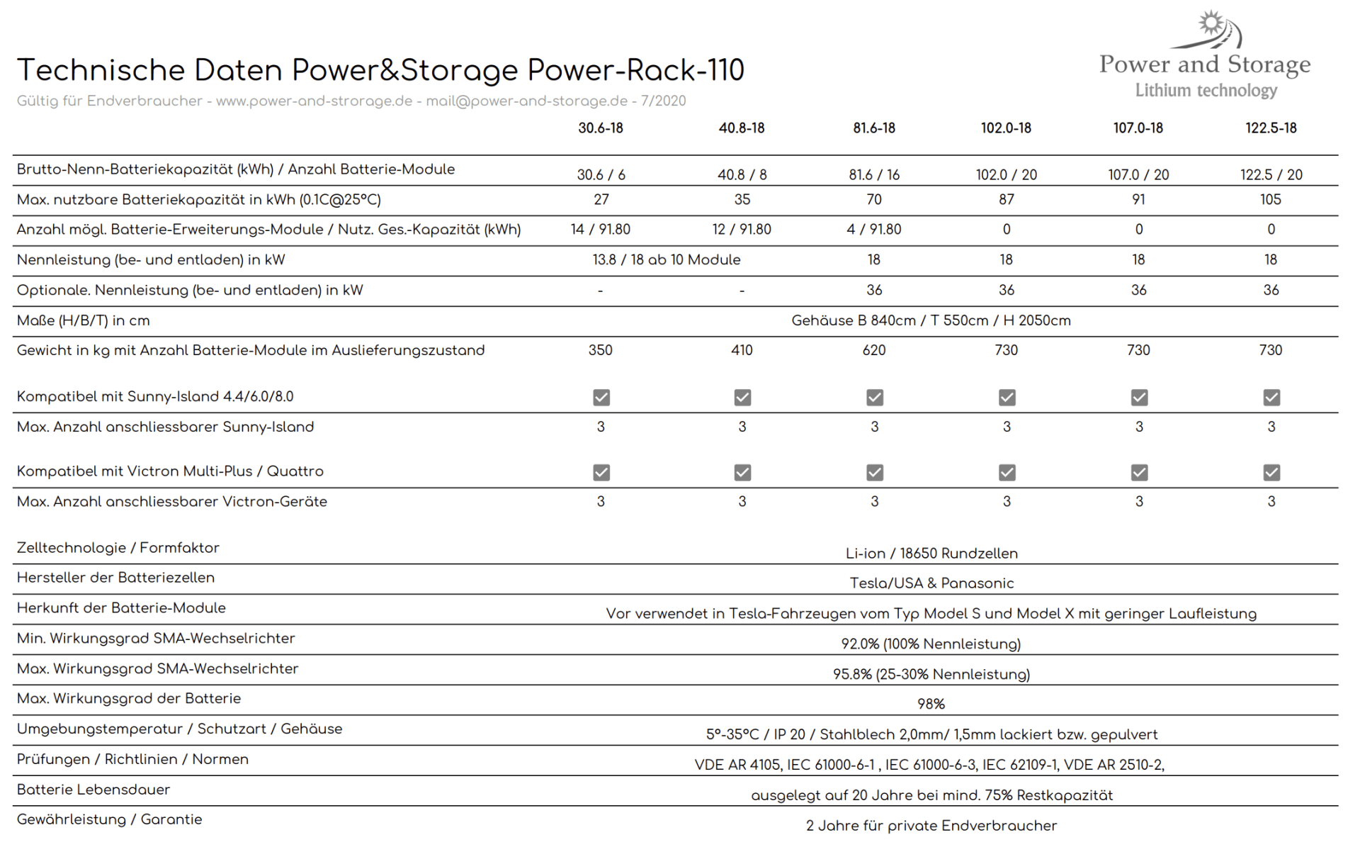 PowerRack 110Voor handel/industrie en grote woongebouwen Nominale capaciteiten van 40kWh tot 110kWh Laad-/ontlaadcapaciteiten van 18kW tot 36kW per PowerRackIn het multicluster met maximaal 990kWh en 72kW of meer vermogen Dankzij een speciaal GBS is onze opslag onbeperkt uitbreidbaar. 1-fase of 3-fase - precies zoals u wenst TESLA batterijmodules binnen